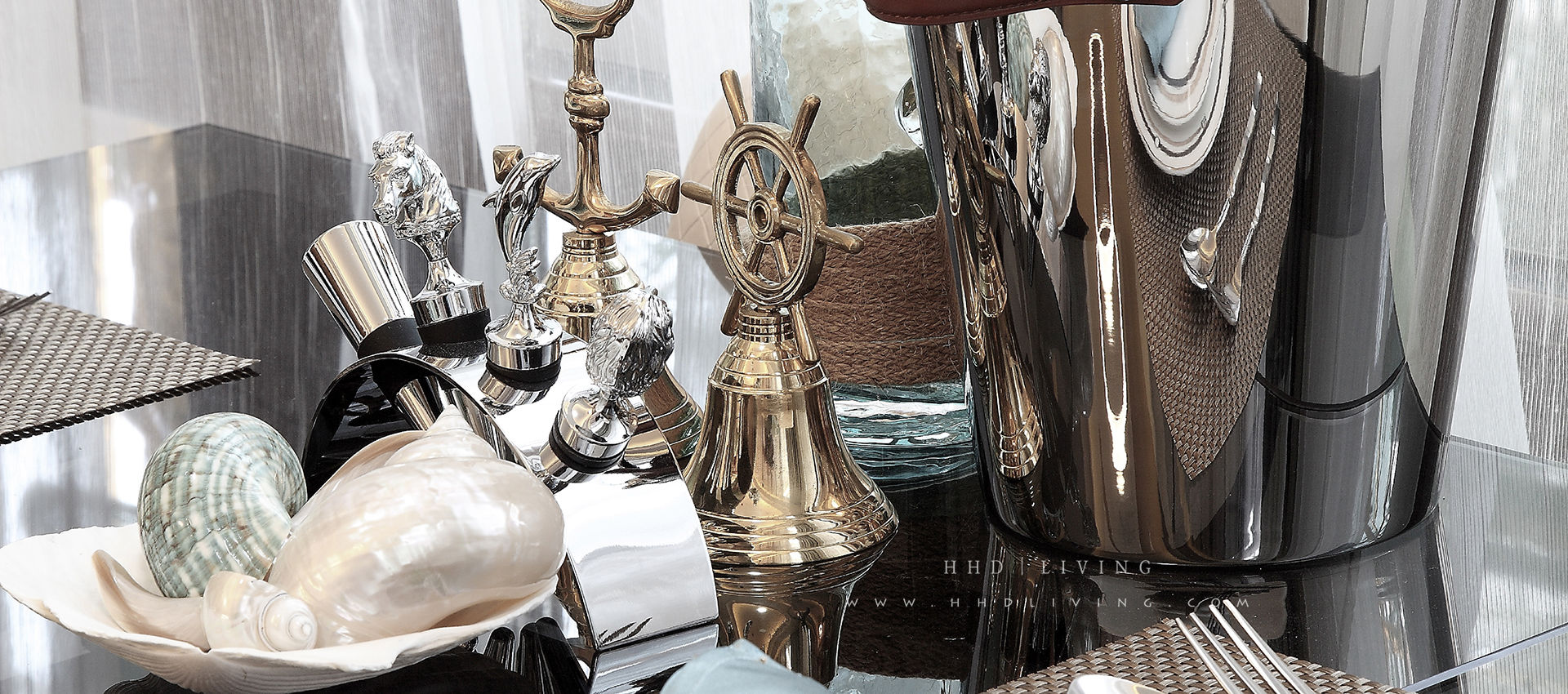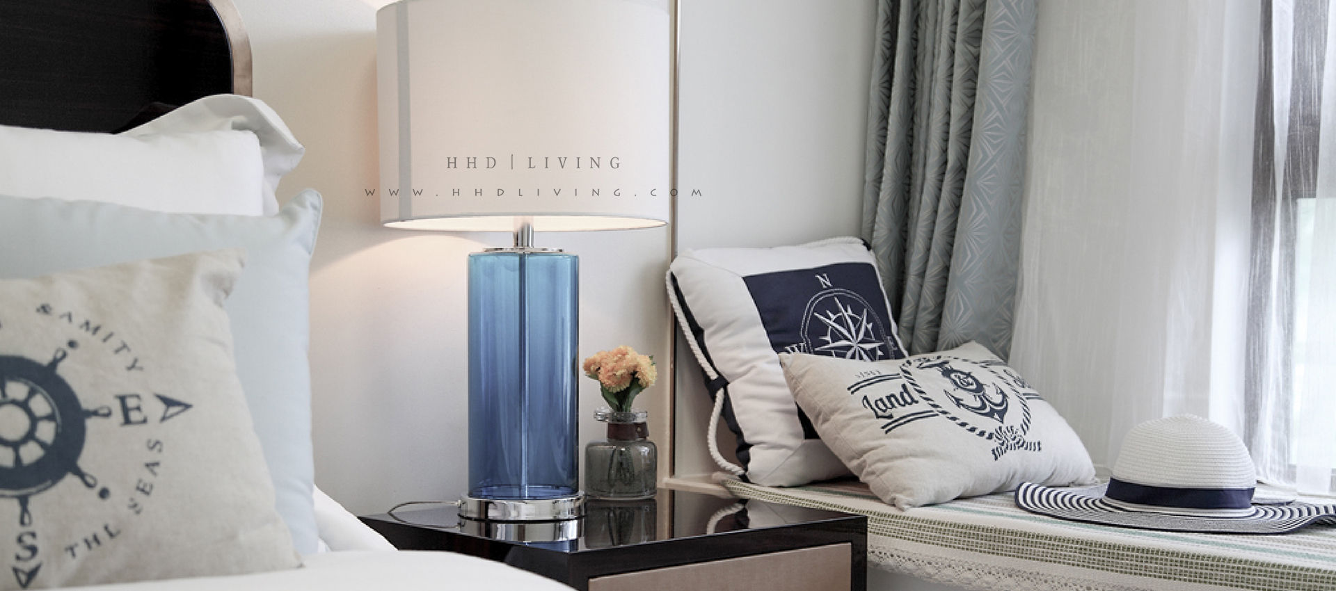蓝色与金色的色彩碰撞带给住户如同阳光照耀海洋的温柔静谧,将房间装点成海滨格调,是夏日清凉的期盼,『HHD·Living』迎合了现代人追求思想回归和内心宁静的需求。