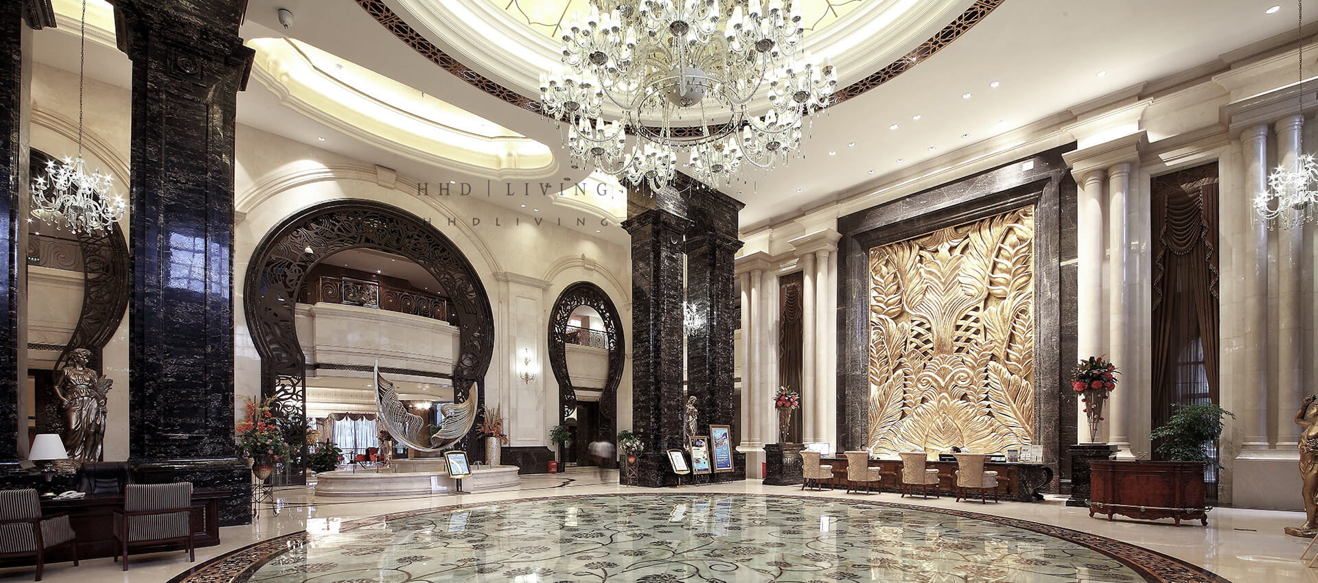 龙光地产·龙光城是由香港假日东方国际顾问有限公司-利宾空间设计(深圳)有限公司打造的一个会所空间,HHD·Living利宾设计以简约而复古的现代欧式风格,渲染了龙光城会所空间中特有的华丽与品质感。空间中,随处可见繁琐而精美的雕花装饰、硕大而华美的吊灯与壁画、小巧而精致的装饰摆件,皆为空间增色不少。在会所的大堂区域,HHD·Living利宾设计选用了大理石光滑而带有纹理的白色与黑色填充,显露出空间跨度大而带来的空旷与大气之感。